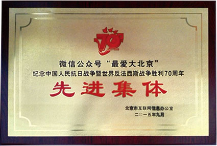 《最爱大北京》纪念中国人民抗日战争暨世界反法西斯战争胜利70周年荣获“先进集体”称号