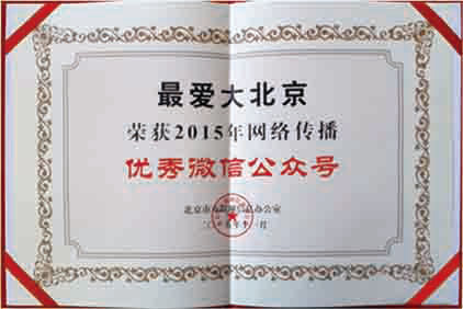 《最爱大北京》于2015年荣获网络传播“优秀微信公众号”。